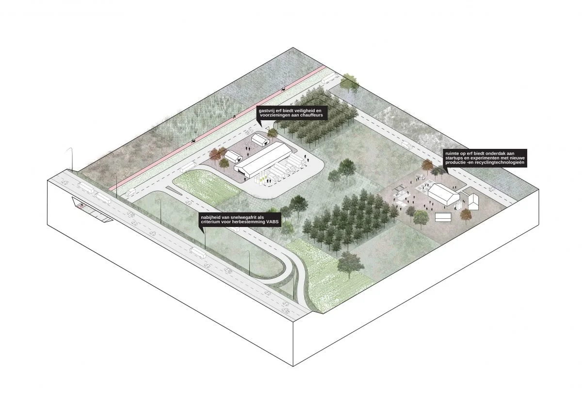 Vacant farmyards in the Breda region can be redeveloped with new use according to ‘New perspective for VABs’. Examples of new uses could be ‘Willy Wortel farmyards’ (named after the always-inventing cousin of Donald Duck), where the messiness of experimentation and exploration is embraced by artists and maker-inventors. Or truck B&Bs, where international truck drivers are welcome to park and spend time while waiting for the right moment to deliver their goods at one of the many logistical companies in the region.